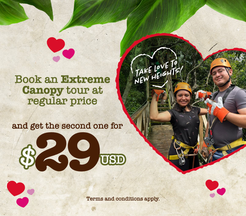 Find your wild side and live to the fullest! Selvatica, where nature and extreme adventure come together. Enjoy zip lines, private Cenote, ATVs, and lots of adrenaline. Applies to Extreme Canopy tour.